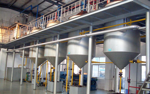 La machine de raffinage d’huile de soja est principalement composée de quatre parties clés : l’équipement de prétraitement, l’équipement de lixiviation, l’équipement de raffinage et l’équipement de stockage.